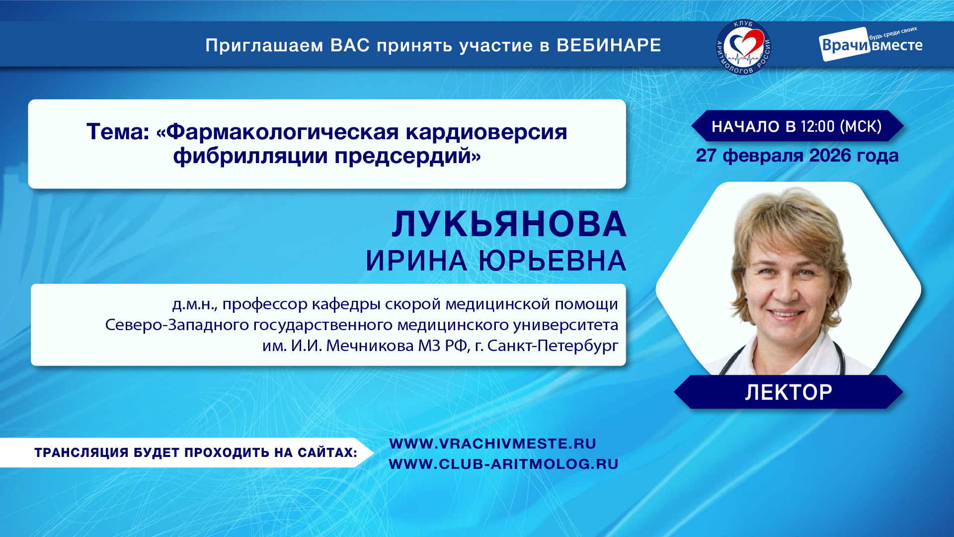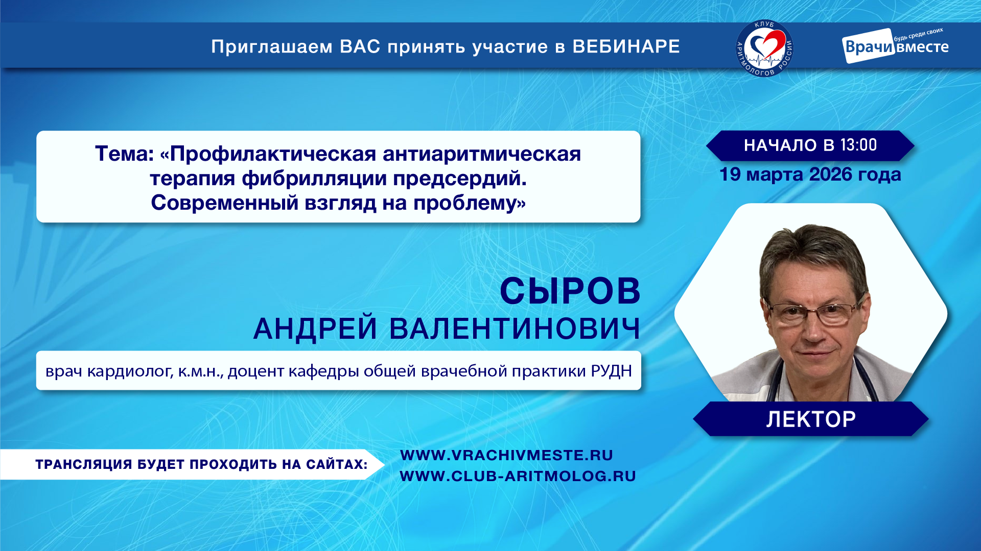 Уважаемые коллеги! Приглашаем Вас принять участие в вебинаре «Выбор стратегии и тактики для пациента с фибрилляцией предсердий»