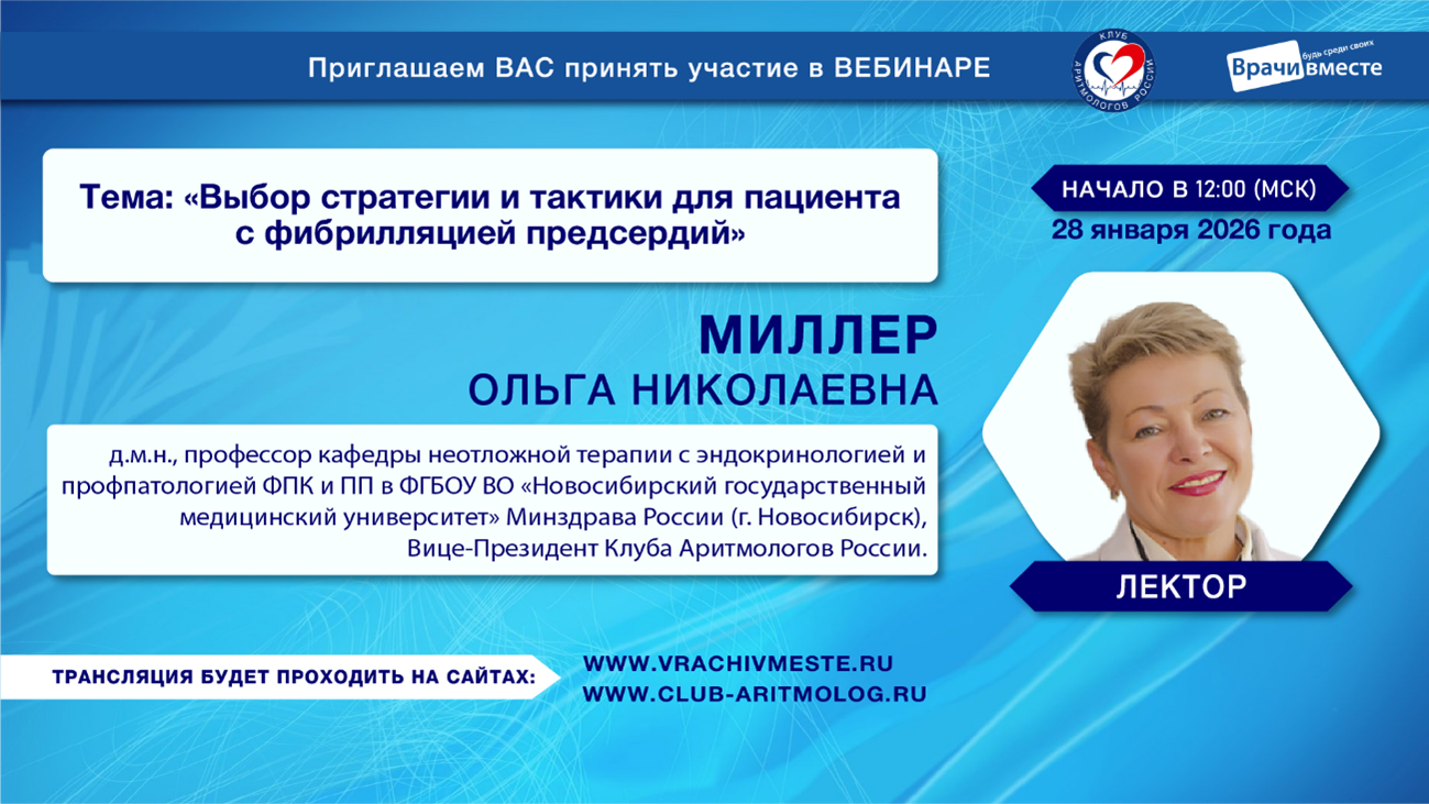 Уважаемые коллеги! Приглашаем Вас принять участие в вебинаре «Выбор стратегии и тактики для пациента с фибрилляцией предсердий»